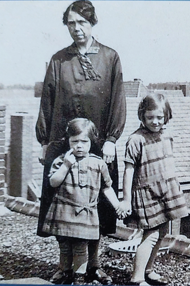 mijn oudere zus Mieke en ik. Er was een gemeenschappelijke binnentuin waar we