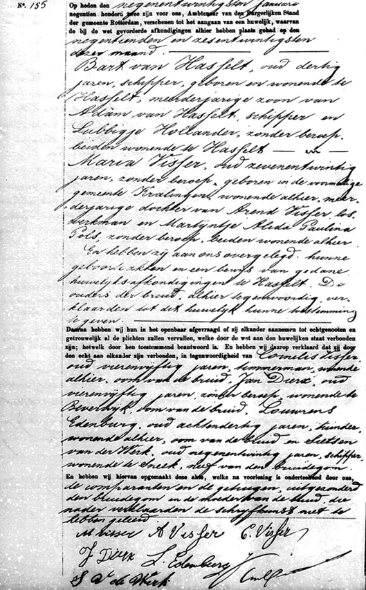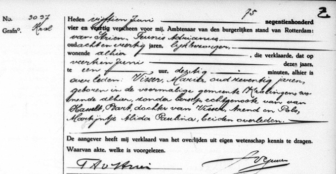 24 maart 1874 te Kralingen, getuige Cornelis Wilhelmus Visser geb 1850,