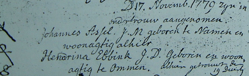 Ondertrouwd op vrijdag 17 november 1786 te Zevenhuzien,