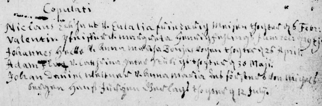 voor de kerk (ev) op donderdag 30 mei 1675 te Zimmersrode Hessen[3]